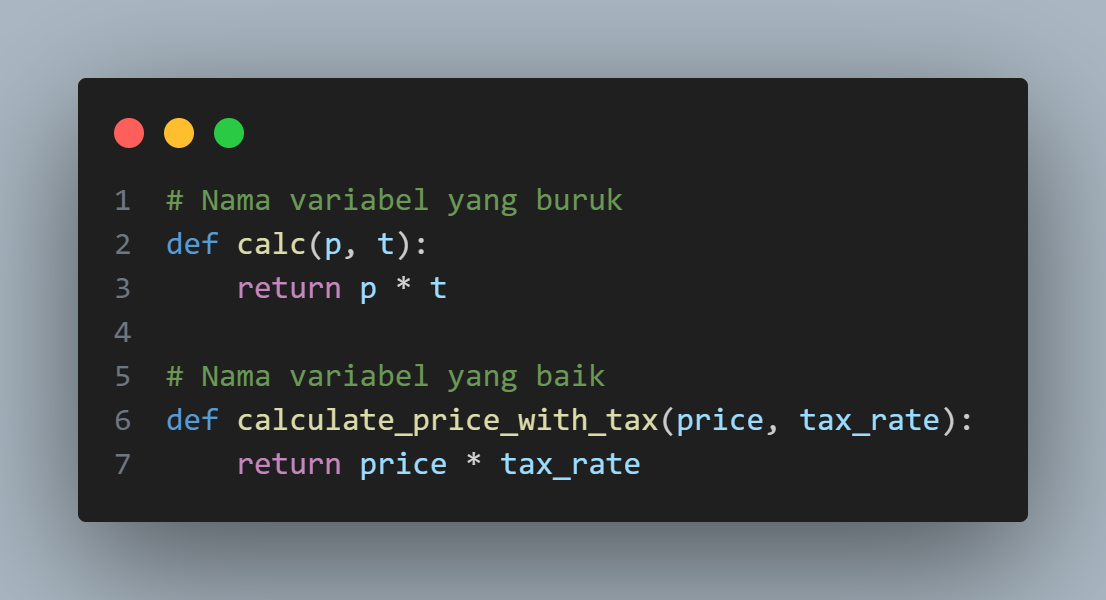 Hindari singkatan atau nama ambigu seperti x, y, atau